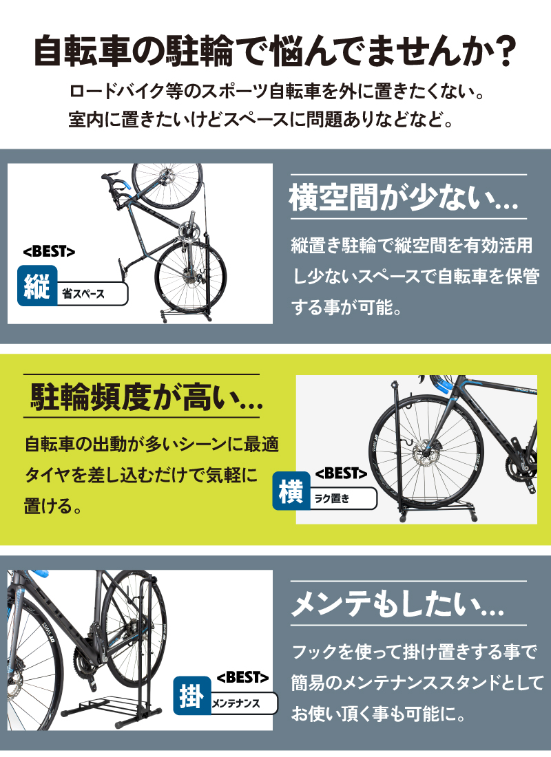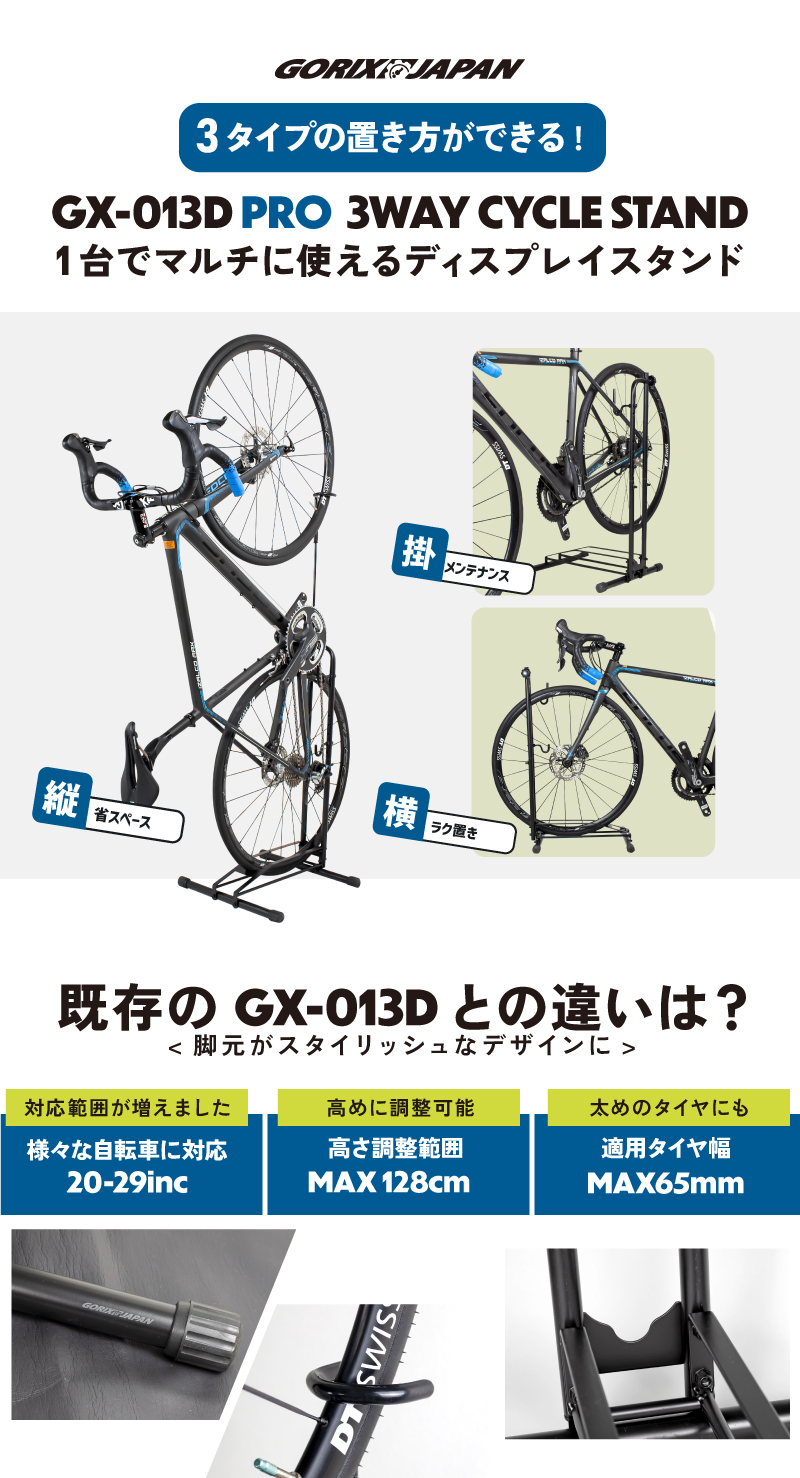 GORIX 自転車 スタンド 縦置き 自転車スタンド 横置き L字 3タイプの置き方ができる 1台 室内 メンテナンス 3タイプ 倒れない (GX-013D PRO) ロードバイク