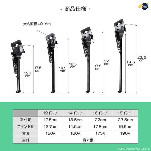 自転車 キックスタンド 子供用 12 14 16 18 20 インチ 片足 自転車 スタンド サイドスタンド 取り付け簡単 三輪車 ブラックキッズ 子供自転車 ストライダー