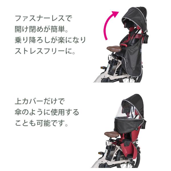 自転車 レインカバー 後ろ乗せ用 ルーフ型 OGK 屋根型 後ろ子供乗せ用 リア グランディア ハグシート 専用 黒 梅雨 防風 寒さ対策 通気性 雨避け 風避け 雨具