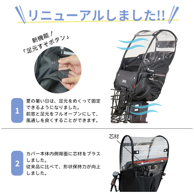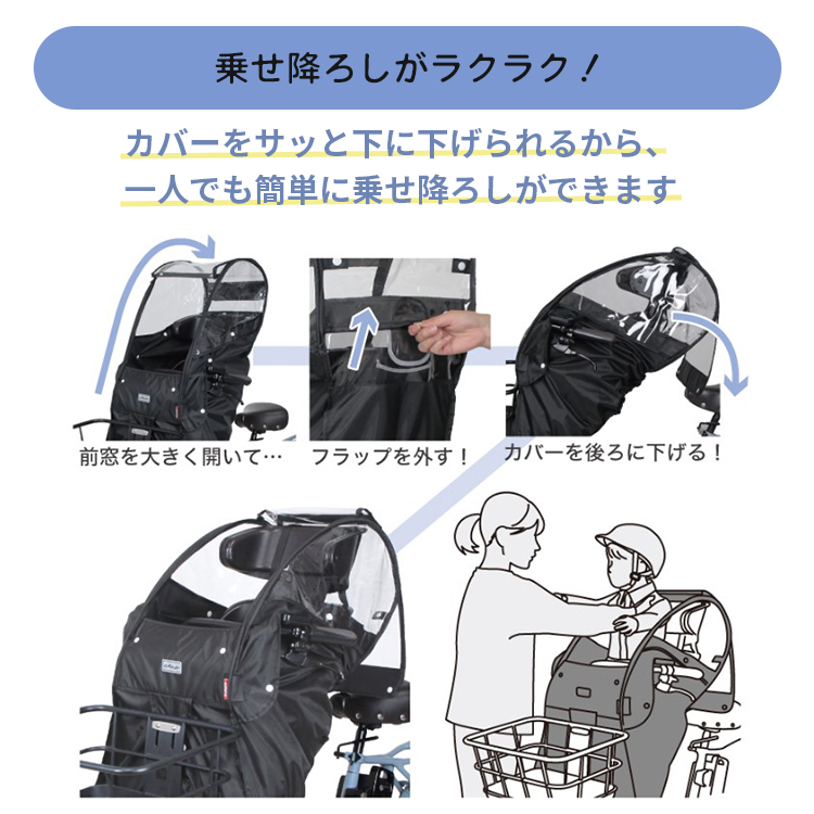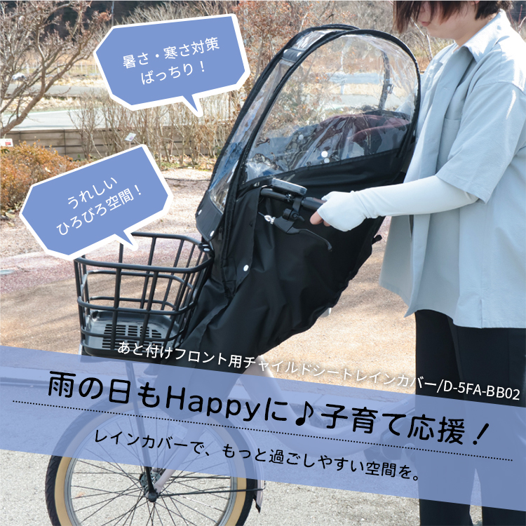 自転車 チャイルドシートレインカバー あと付け前用 ブラック 子供 雨よけ 防寒 熱中症対策 D-5FA-BB02 Bスタイル MARUTO マルト 大久保製作所
