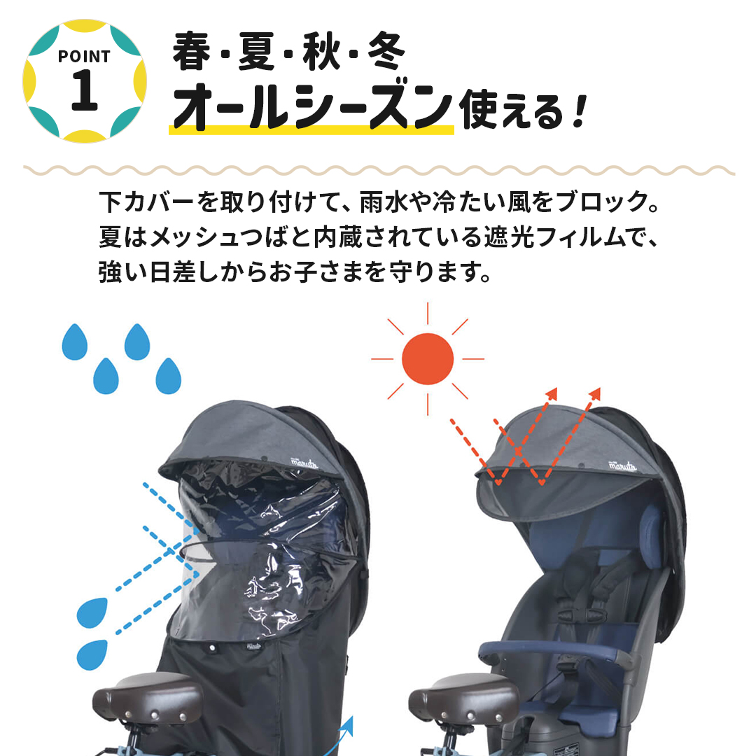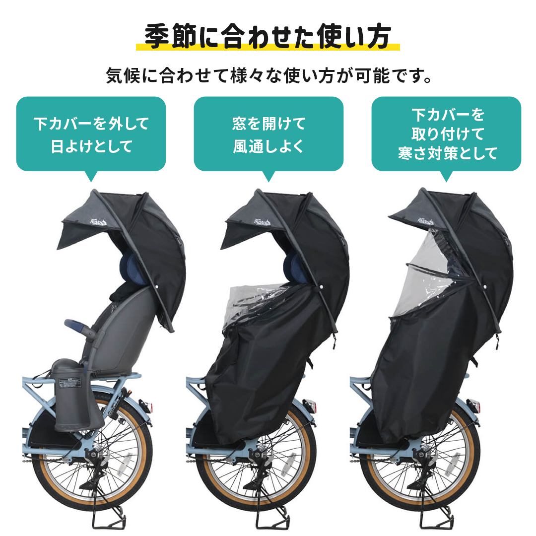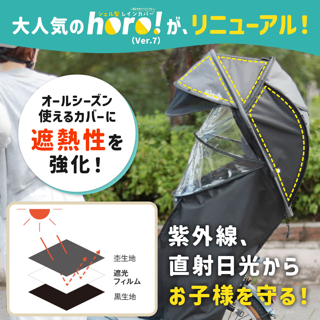 自転車 子乗せカバー レインカバー horo!7 シェル型 レインカバー 後ろ乗せ用 日よけ 日焼け防止 熱中症対策 紫外線対策 寒さ対策 入園 入学 通園 お迎え 送迎