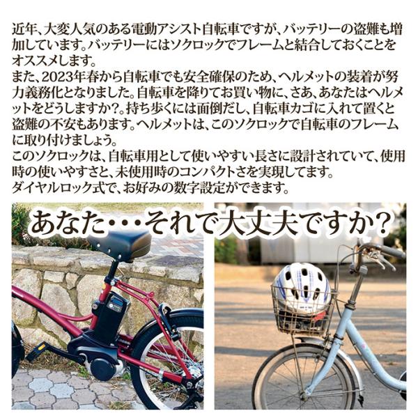 バッテリー 盗難防止 SOKULOCK ソクロック ショート SL-02 電気自転車 電動 鍵 ダイヤルロック ヘルメットホルダー メール便 送料無料
