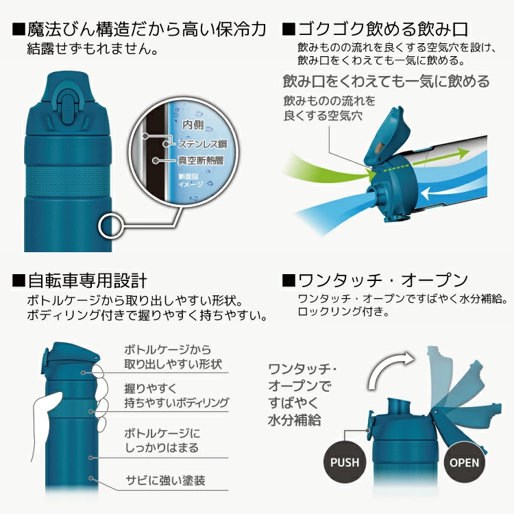 FJP-601 真空断熱スポーツボトル THERMOS/サーモス WBT08 600ml ダークグレー/フォギーブルー/サンドベージュ