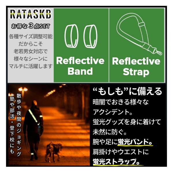 反射 リフレクター タスキ バンド 3pcsSET 蛍光 アームバンド 安全バンド 夜間 暗闇 防犯 安全 襷 ジョギング 登下校 ランニング 災害 散歩 夜釣り RATASKB