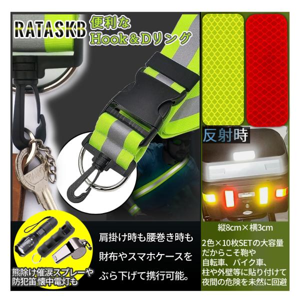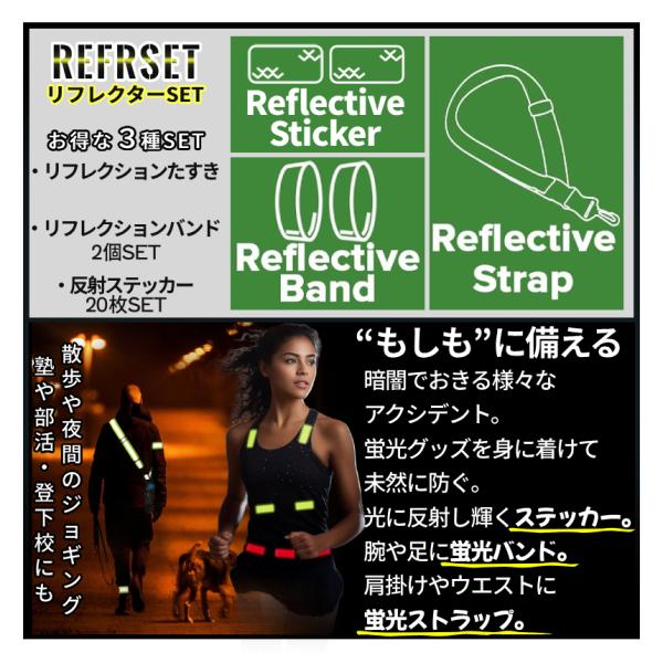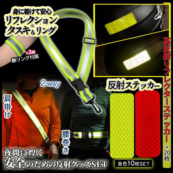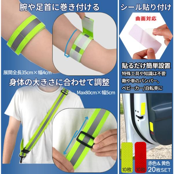蛍光 リフレクター タスキ バンド ステッカー 3種SET 黄色 赤 10枚 夜間 反射 リフレクション シール 反射 安全バンド 車 バイク 暗闇 防犯 襷 散歩 REFRSET