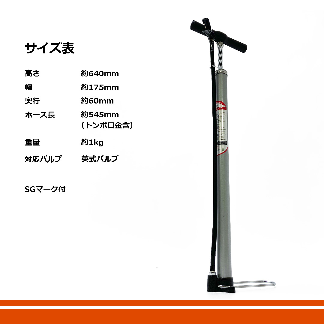 自転車 空気入れ SGマーク エアーポンプ シルバー 英式 サギサカ EV フロアポンプ 軽量 簡単操作 シンプル スタンダード 一般車 コンパクト スリム