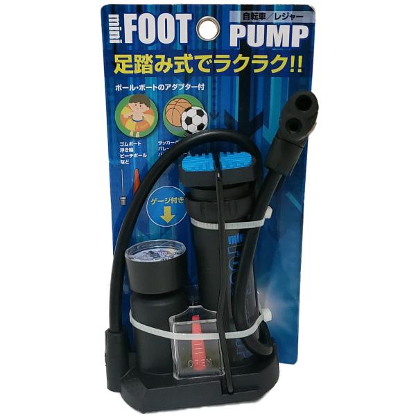 自転車 空気入れ ゲージ付き ミニフットポンプ 英式 米式 通勤 通学 EV AV ママチャリ シティサイクル MTB 空気圧 コンパクト ボール うきわ ノズル付 サギサカ