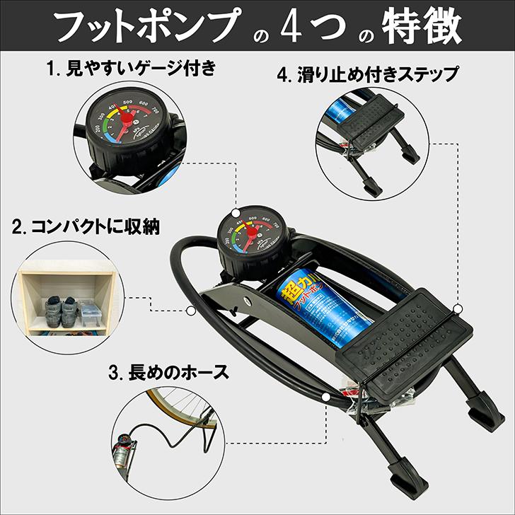 自転車 空気入れ 超カル フットポンプ 足踏み 英式 米式 シティサイクル ロードバイク MTB サギサカ 新生活 新入学 新学期
