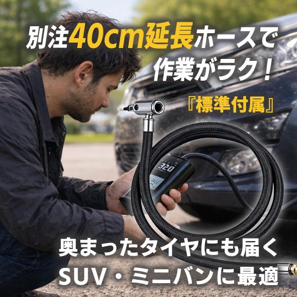 電動空気入れ 空気入れ 電動 40cm延長ホース付属 自動車 自転車 車 バイク 充電式 小型 軽量 エアーポンプ USB ボール 浮き輪 自動停止 コードレス