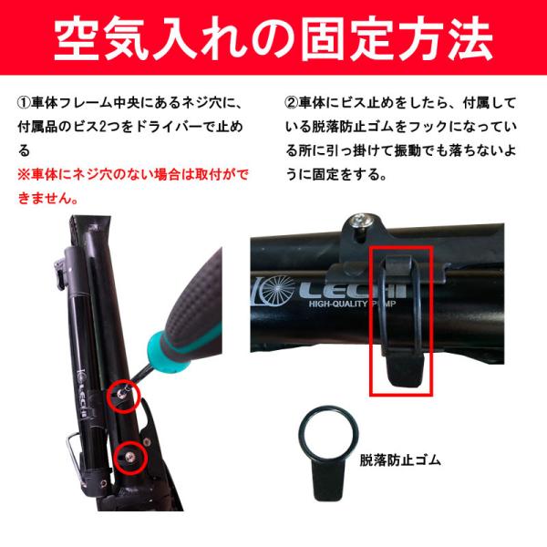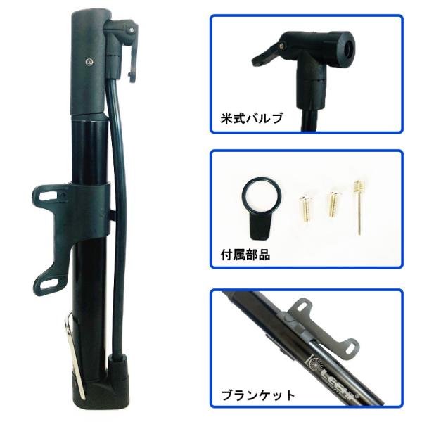 LECHI 空気入れ ミニフロアポンプ 携帯用ポンプ アメリカ式 米式 | 自転車 ボール 対応 軽量 エアポンプ プレーム取付 携帯