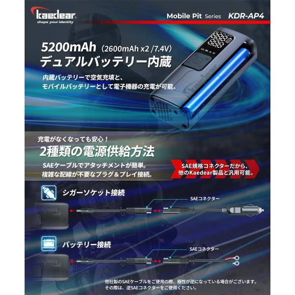 バイク 空気入れ 電動 エアーポンプ 電動空気入れ バッテリー&DC12V シガーソケット SAE 全バルブ対応 オートバイ/自動車/自転車/ボール/浮輪 KDR-AP4