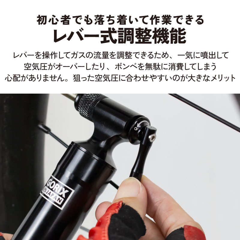 CO2インフレーター 自転車 空気入れ 仏式 米式 ロードバイク レバータイプ ボ ンベ 携帯空気入れ 小型 ゴリックス (GX-CO27) (CO2ボンベ1本付き)