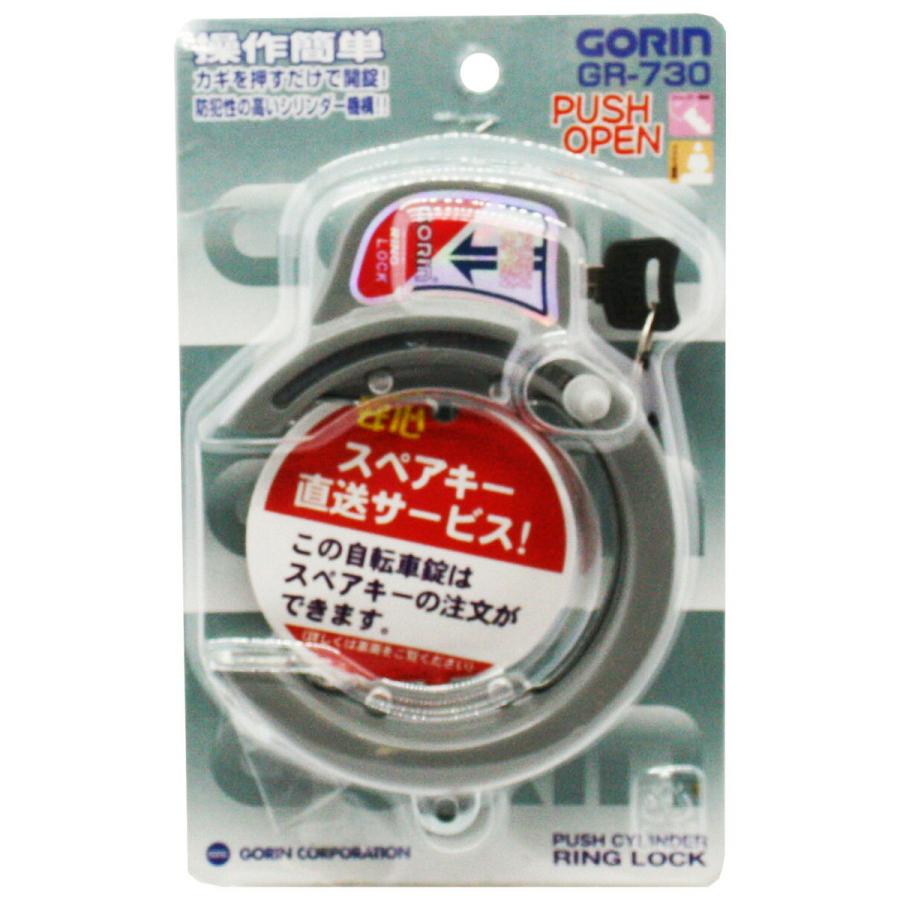 自転車 鍵 プッシュ式 リングロック グレー リング錠 馬蹄錠 固定 シティサイクル WO型 GORIN ゴリン 新生活 新入学 新学期