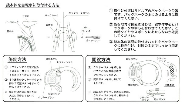 自転車 鍵 ボタン式 リングロック ブラック リング錠 馬蹄錠 固定 シティサイクル WO型 GORIN ゴリン