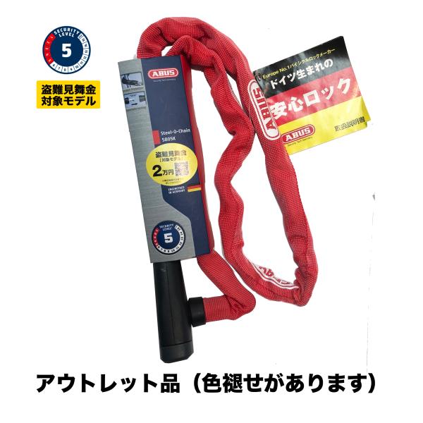 アウトレット品(ABUS)アブス チェーンロック/ 5805KEY 110 (1100mm)鍵タイプ レッド 色褪せあり