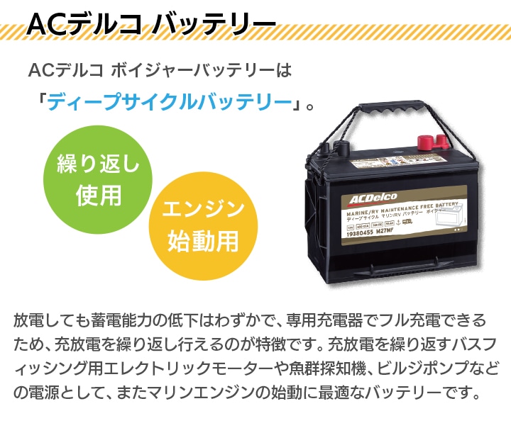 ACデルコ M27MFKB ボイジャー ディープサイクルバッテリー マリン 船舶用 メンテナンスフリー サブバッテリー