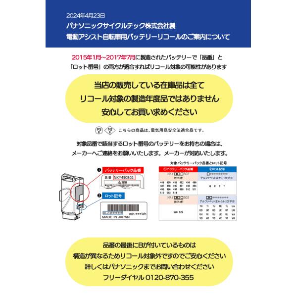 *当日発送 平日13時迄注文分* 新品 純正品 NKY513B02B ブラック 8.9Ah パナソニック バッテリー リチウムイオン 旧品番:NKY450B02B 電動自転車 Panasonic op