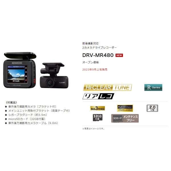 DRV-MR480 ドライブレコーダー ケンウッド 前後撮影対応2カメラ microSDカード32GB付属