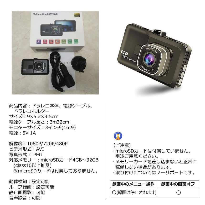 2個セット ドライブレコーダー ドラレコ 3インチ 大画面 液晶 1080P 上書き 人気 おすすめ ドライブレコーダー 工事不要 録画 あおり運転 駐車監視 DR-T626