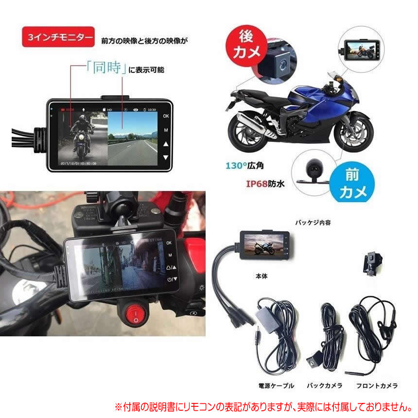 2個セット バイク ドライブレコーダー ドラレコ 前後カメラ 同時表示 常時録画 ドラレコ 3インチ液晶 バイク スクーター交通事故 記録 煽り運転防止 DR-MT18