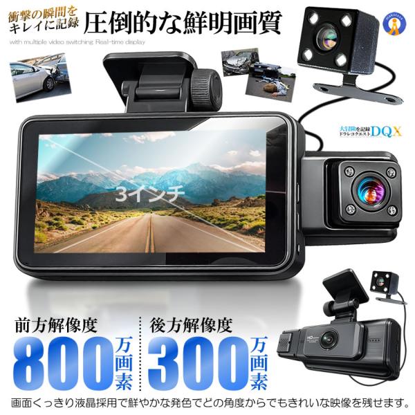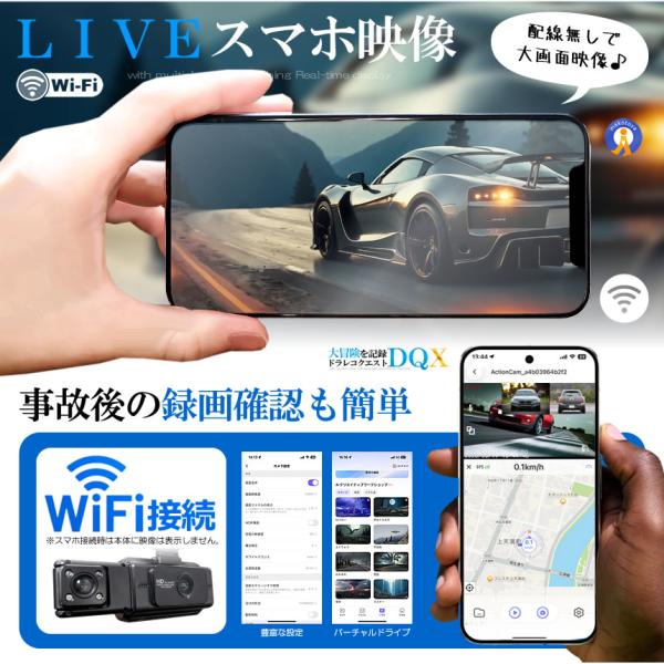 ドライブレコーダー WiFi 常時録画スマホ 3カメラ 前後 リア ドラレコ 車 暗視機能 バックカメラ CARCAM