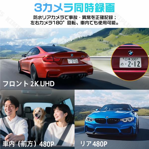 ドライブレコーダー 前後 3カメラ SONYセンサー 1440PフルHD 500万画素 赤外線暗視ライト WDR 64GBカード エンジン連動 ノイズ対策済 LED信号機対策 人気