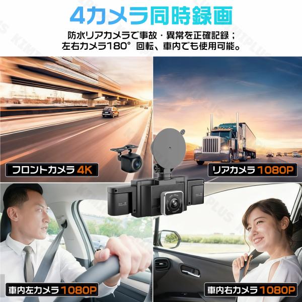ドライブレコーダー 前後 左右 4カメラ 3.0インチ液晶 ノイズ対策 829万画素 フルHD 4K WDR 170°広角 ループ録画 夜間撮影 衝撃録画 GPS搭載 WIFI Gセンサー
