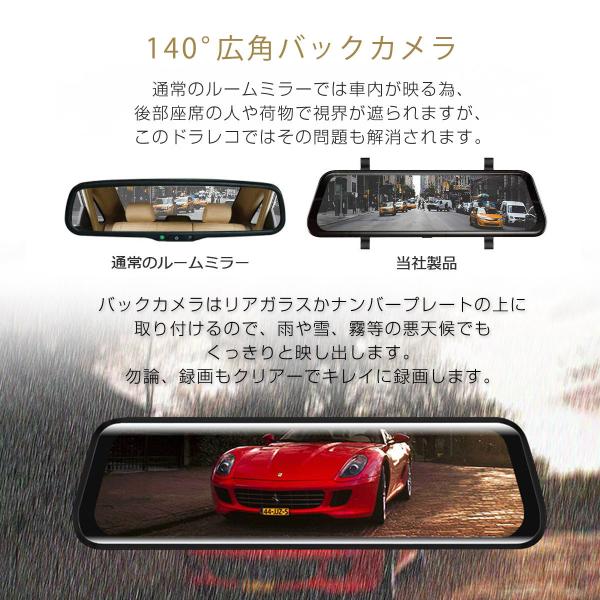 ドライブレコーダー ミラー型 2K 1296p 200万画素 前後カメラ あおり運転対策 FHD 10イン タッチパネル 6ヶ月保証