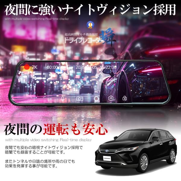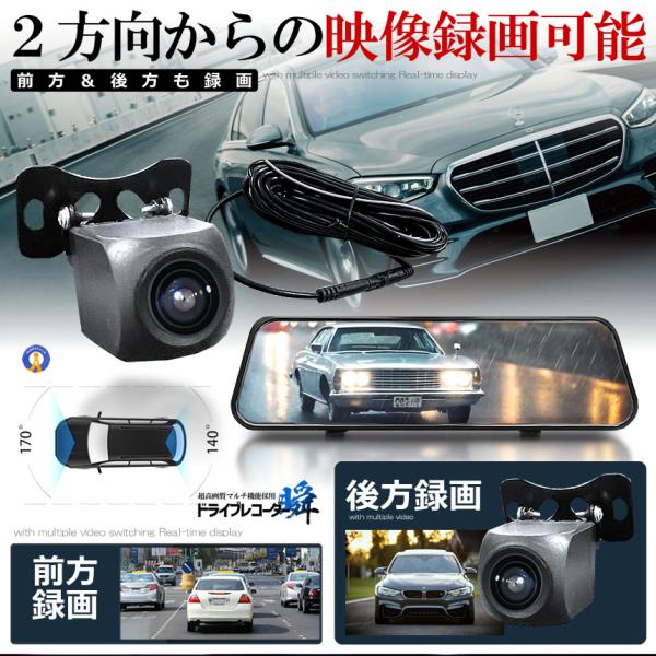 全画面液晶 ドライブレコーダー 前後 ミラー型 2カメラ 10インチ 超大画面 タッチパネル式 日本語説明書 MIRAIDORA