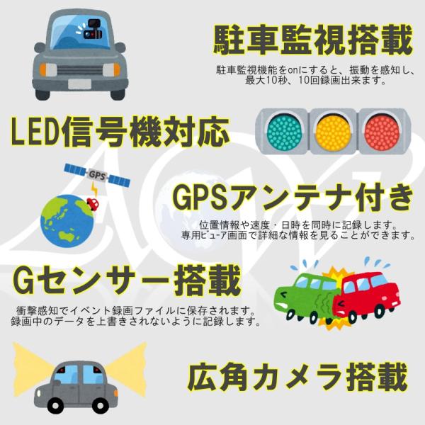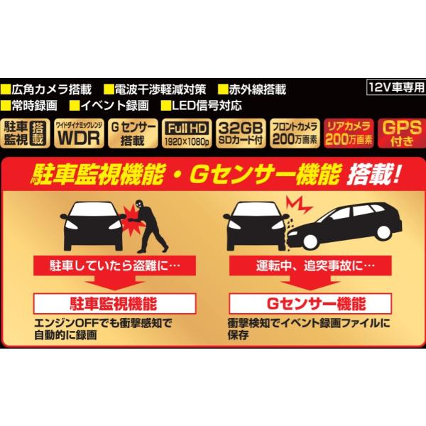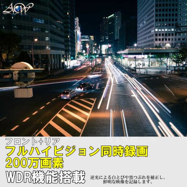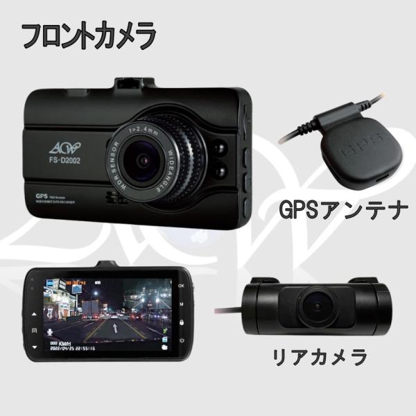 FS-D2002フルハイビジョン ドライブレコーダー 前後2カメラ Gセンサー WDR SDカード付 広角カメラ搭載 あおり運転 対策 常時録画 LED信号対応