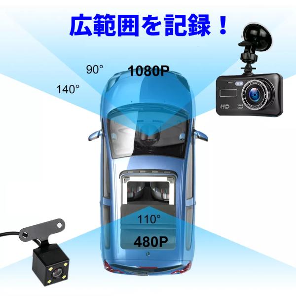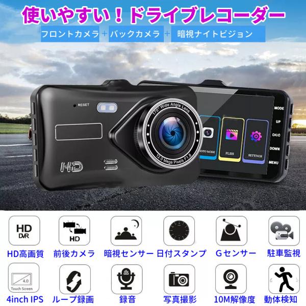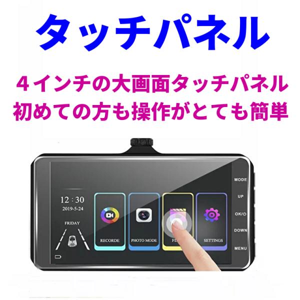 ドライブレコーダー タッチパネル 4インチ 駐車監視 IPS液晶 暗視 HDR 200万画素 高画質 1080P 140度 タイムラプス撮影 安心保証 日本語説明書