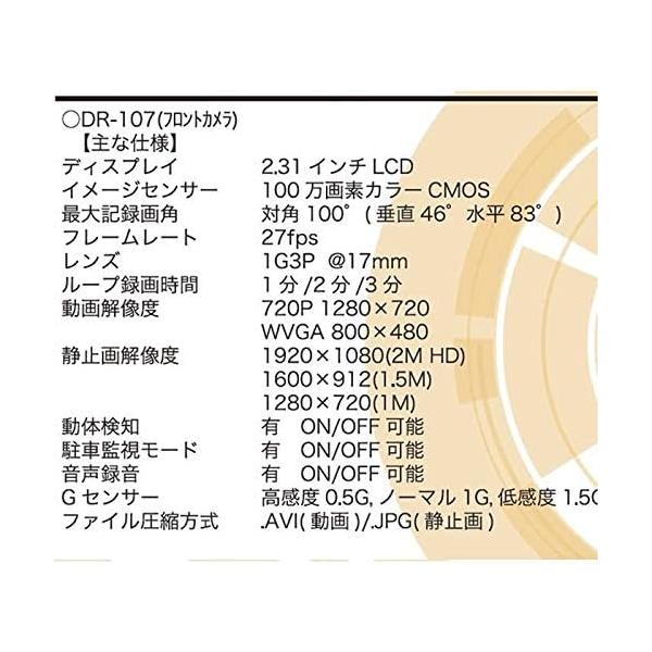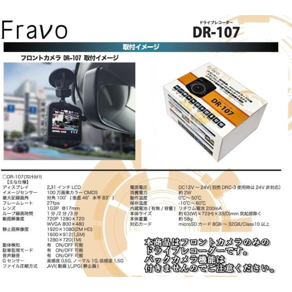 FRAVO ドライブレコーダー フロント用 DR-107 Gセンサー 2.3インチ 常時電源無しタイプ 自動録画 手動録画 衝撃感知録画 音声録音 胴体検知 日本メーカー