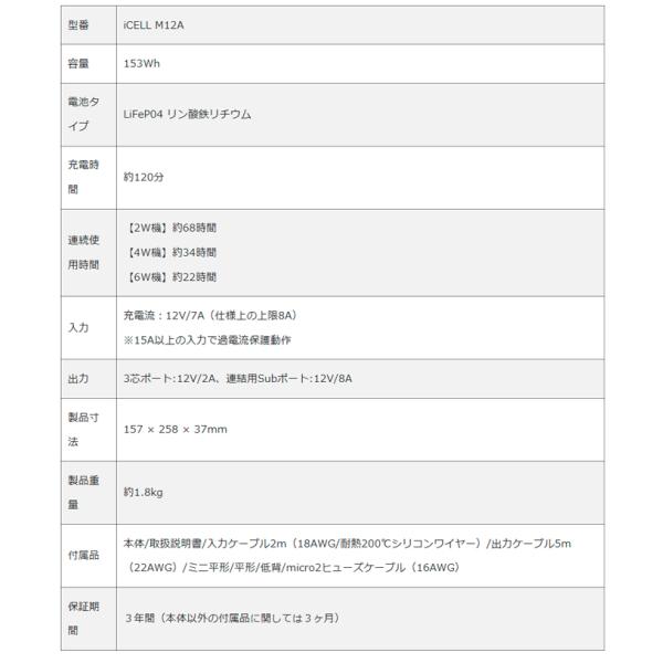 iKeep ドライブレコーダー専用 153Wh 大容量 バッテリー 内蔵 補助バッテリー iCELL2-M12A