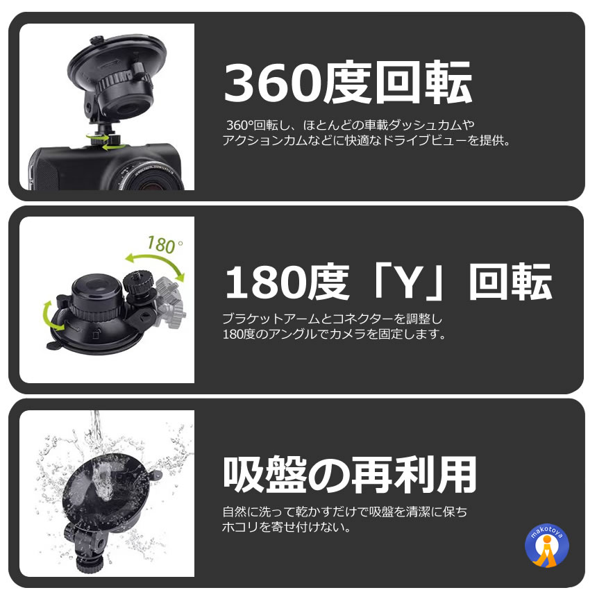 2個セット ドライブレコーダー 吸盤式マウント 真空 超強力吸着 360度回転 角度調整可能 ワンタッチ脱着 小型軽量 DORESTA