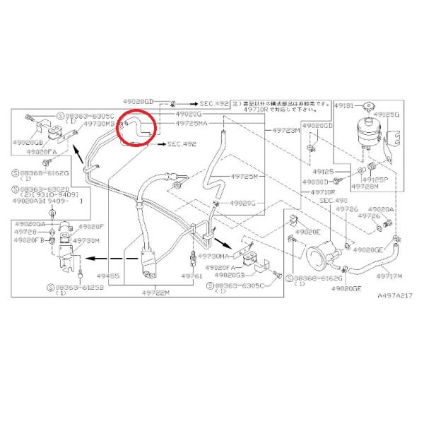 日産 純正部品 S15 シルビア パワステホース リターン ラック側