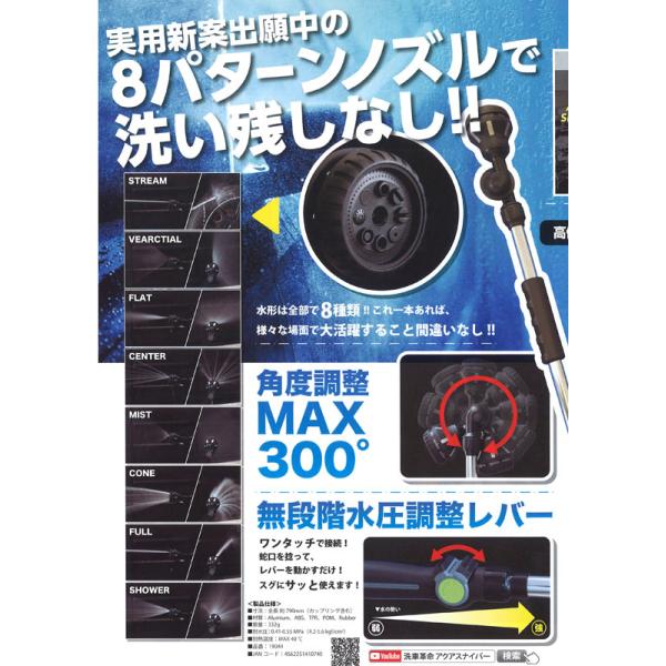 洗車ロングノズル アクアスナイパー ZACJAPAN 軽量設計 約332g 水圧調整レバー付き