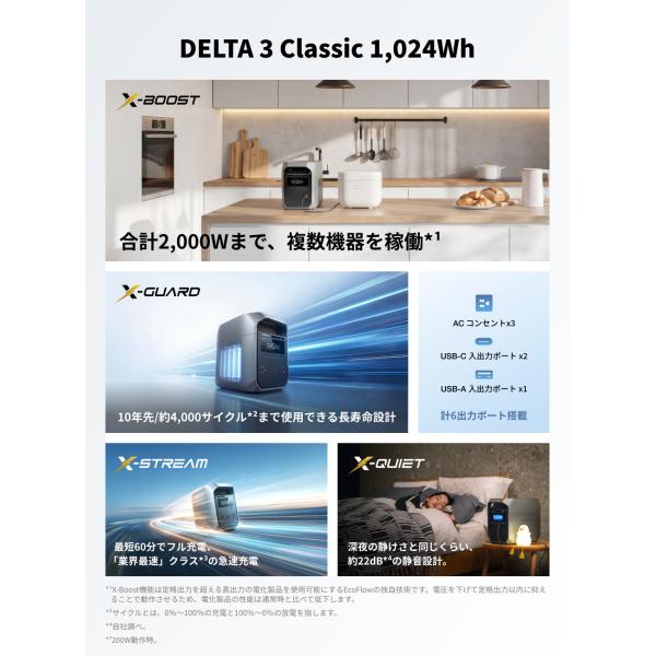 新製品 防災 ポータブル電源 大容量 EcoFlow DELTA 3 Classic 1024Wh 蓄電池 家庭用 発電機 バッテリー 急速充電 キャンプ 車中泊 停電 エコフロー