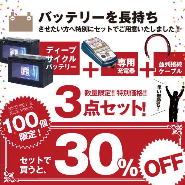 自動車 マリン用バッテリー S31MF 2個 + オプティメイト7 12V/24V +並列用ケーブルセット バッテリー無料回収チケット付き ACデルコ ボイジャーM31MF DC31MF互換