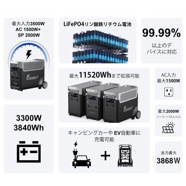 【地震停電対策★】ポータブル電源 3480Wh ソーラーパネル 大容量 FOSSiBOT 家庭用 蓄電池 拡張可能 バッテリー 急速充電 リン酸鉄 車中泊 アプリ対応 防災対策