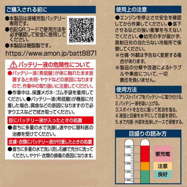 8871 エーモン amon 比重計 アシストパイプ付 液補充型バッテリー専用