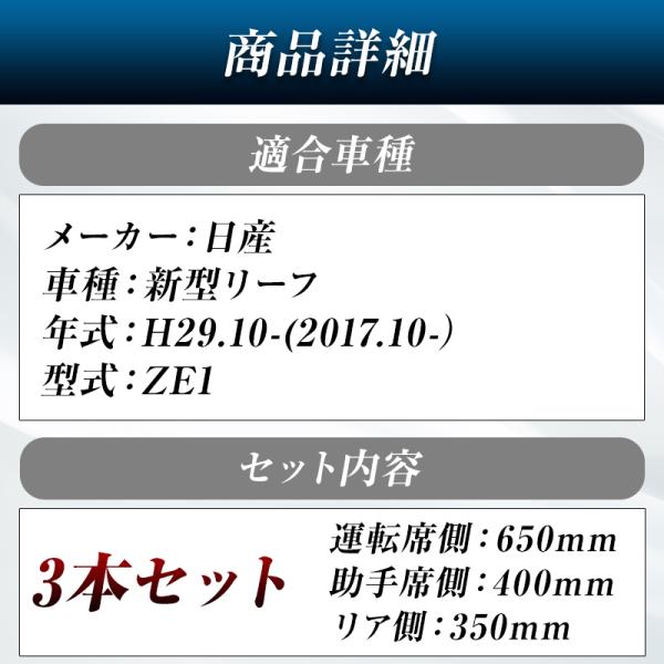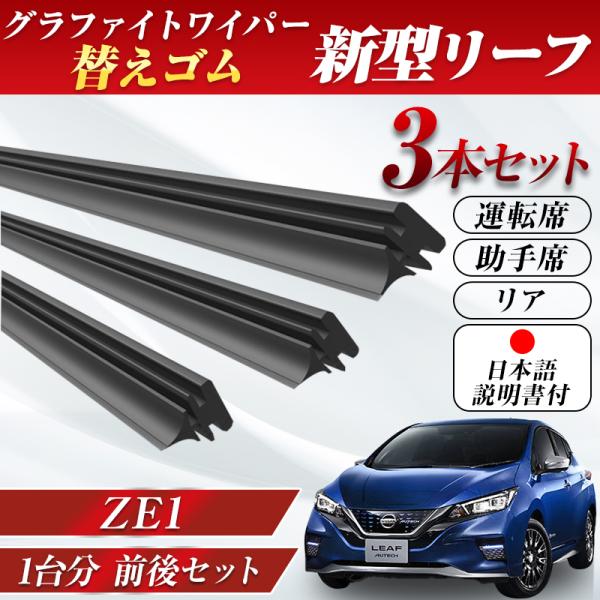 新型リーフ ワイパー 替えゴム 日産 ZE1 適合サイズ フロント2本 リア1本 計3本 交換セット NISSAN 互換品
