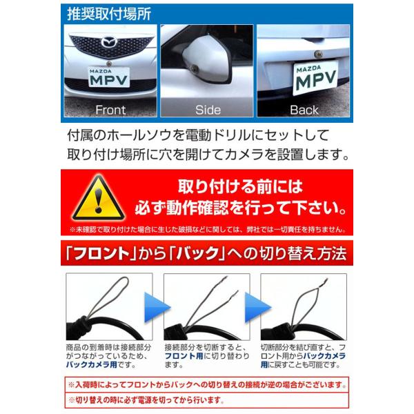 360度回転可能 埋め込み式 アイボールカメラ フロントカメラ / バックカメラ 正像/鏡像 切替機能 ガイドラインなし