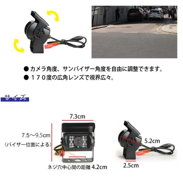 車載 バックカメラ 赤外線 暗視 170度 広角 12V 24V バックモニター リアカメラ CCD 角度調整 後付け