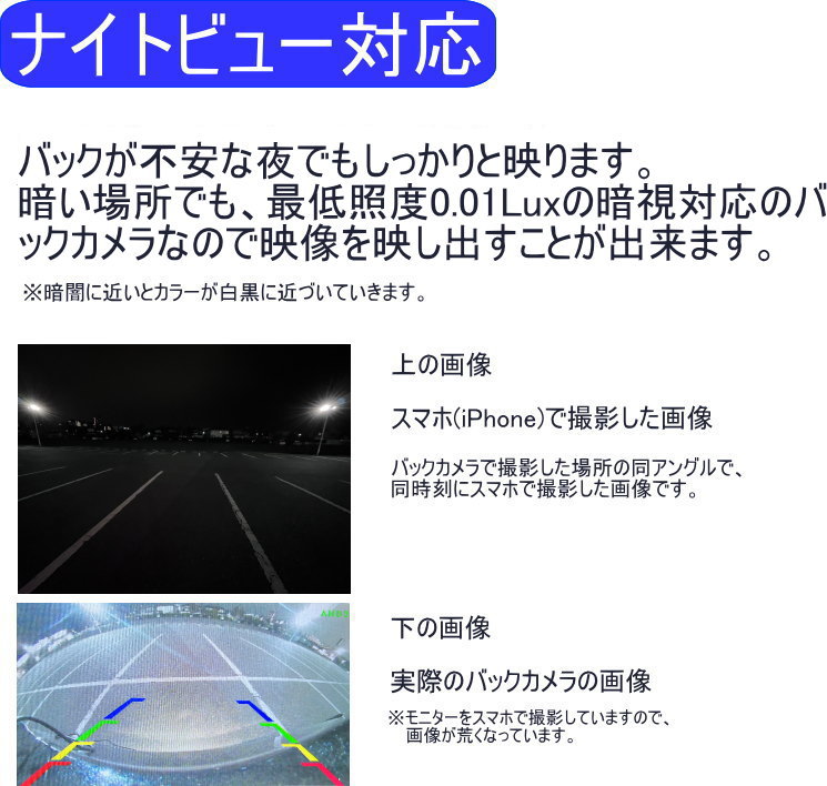バックカメラ 後付け 200万画素 AHD対応 超暗視カメラ ナイトビュー CVBS対応 広角170° 6V 12V 24V 本体 caracces CB2292BK