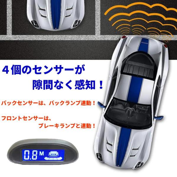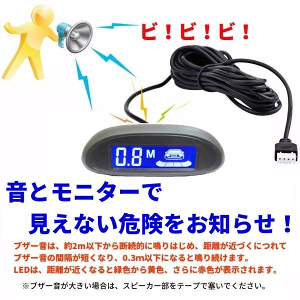 パーキングセンサー コーナーセンサー ソナー センサー 駐車補助 バックセンサー アラーム&lcdモニター付き 12v 黒 白 銀 グレー 青 赤 6色選択 16ヶ月保証