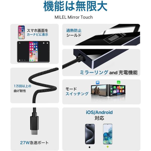 【セール】MILEL MM1 スマートフォンをカーナビにミラーリング可能 カーナビから操作可能 ミラーリング ワイヤレス AppleCarPlay 有線式