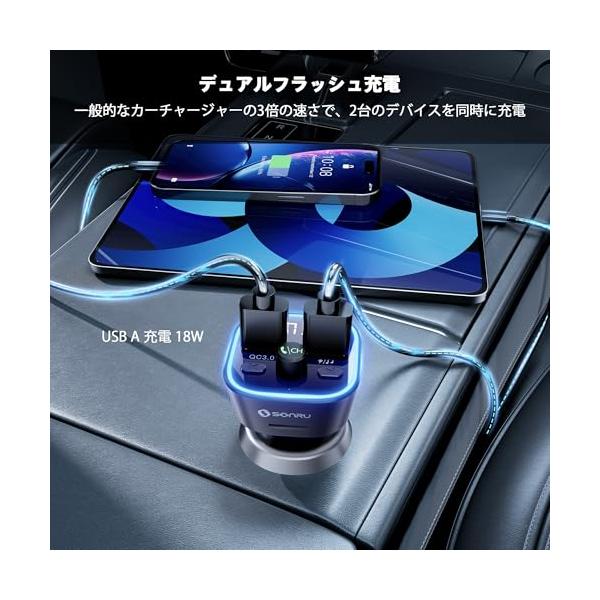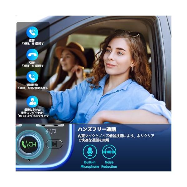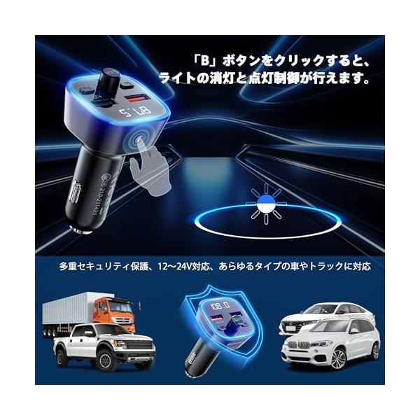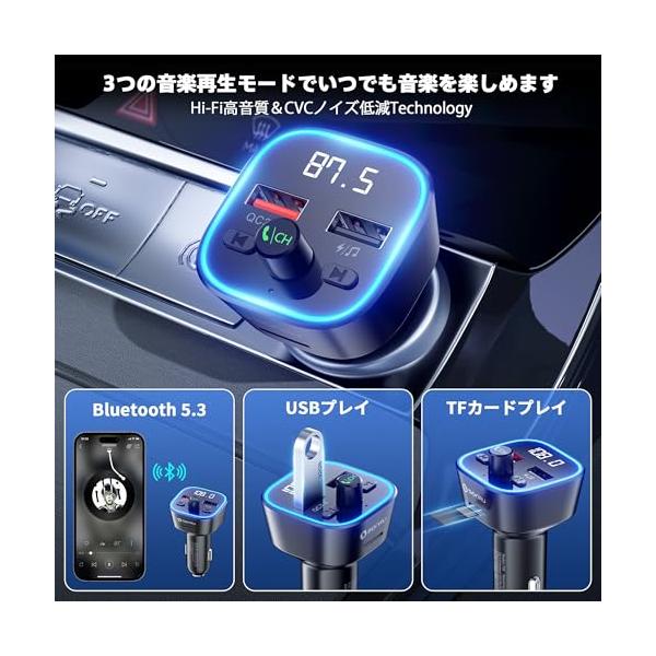 【2026新登場】Bluetoothトランスミッター FM 5.3 車載 fmトランスミッター 急速充電 車載充電器 ハンズフリー通話 Blue