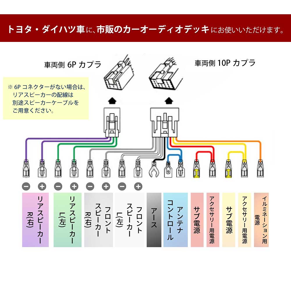 オーディオハーネス トヨタ 車速 コネクター 10P 6P 5P リバース パーキング ナビ 取付 配線 変換 オーディオデッキ 取り付け 交換用 ハーネス カプラーオン