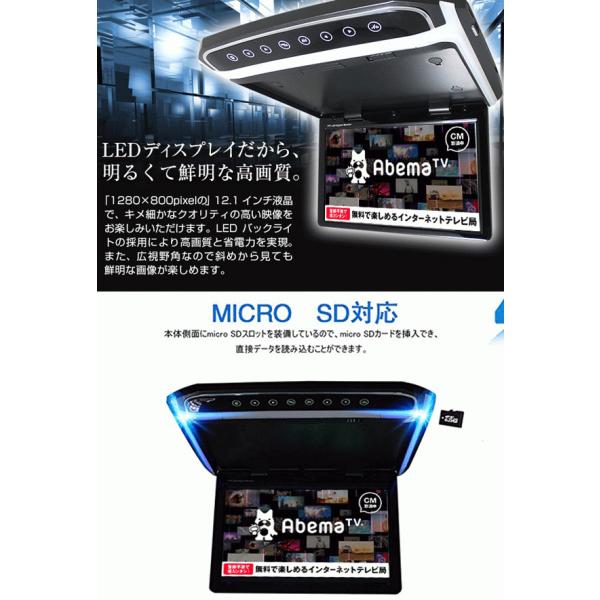 【一年間保証付き】超薄方12.1インチHDMIフリップダウンモニター デジタルフリップダウンモニター 大迫力液晶採用 LEDバックライト液晶HDMI MicroSD対応