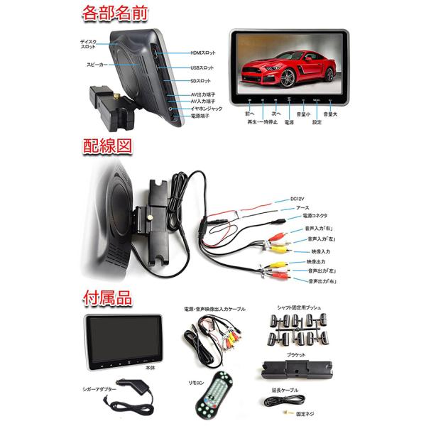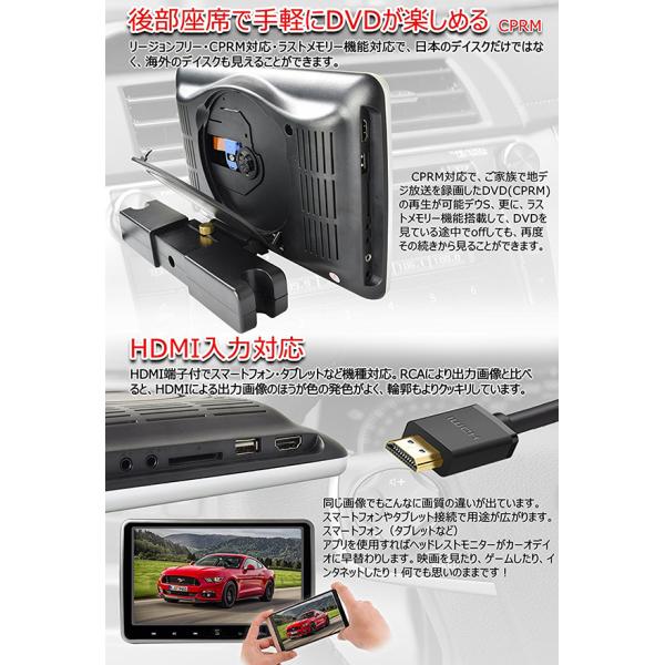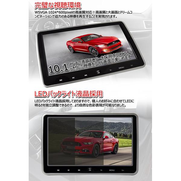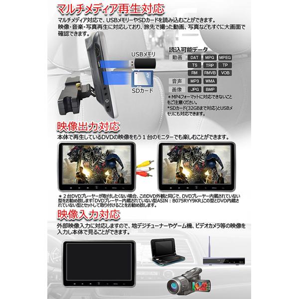 【一年間保証付き】超簡単取付タイプ DVDプレーヤー内蔵 10.1インチリアモニター ヘッドレストモニター 高画質 HDMI連動 AV出力機能 型番DS2660